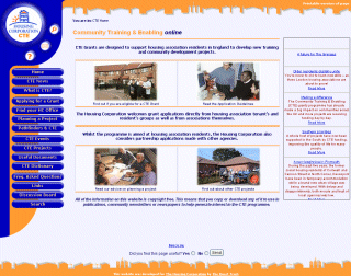 The CTE site was developed for The Housing Corporation to publicise their "Community Training & Enabling" funding stream. It is a database driven site written in ASP.